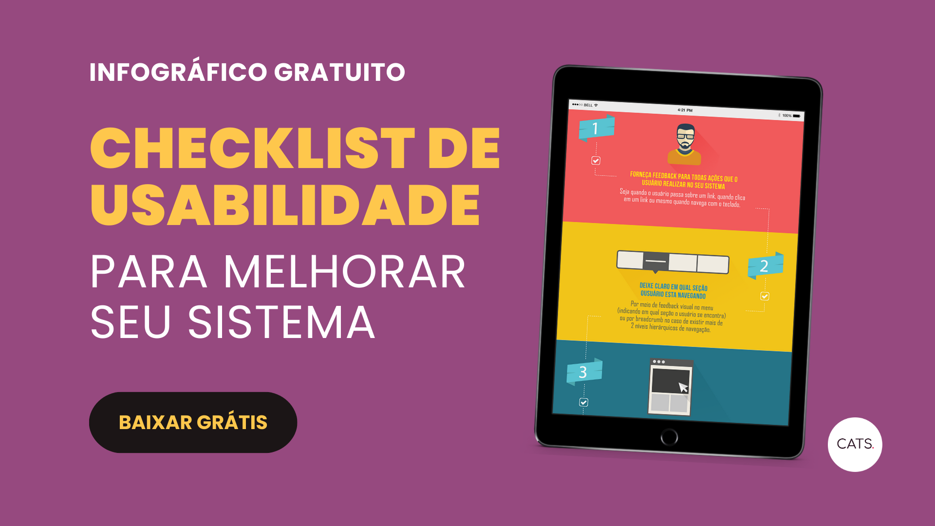 Para tornar ainda mais prática essa revisão em cima de regra e boas práticas de usabilidade, nós aqui na Catarinas criamos um checklist bem completo baseado nas heurísticas de Nielsen e outros estudos de usabilidade.