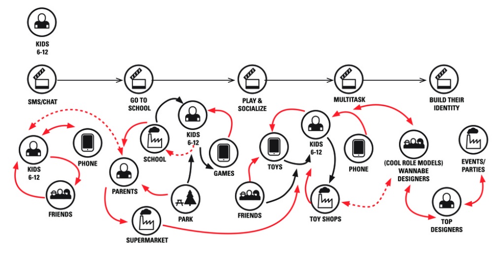 Desdobrar e identificar cada relação ou ponto de contato (algo meio Jornada do usuário/ Blueprint), entender tudo que está envolvido nesse contexto e quais são as trocas realizadas entre as partes.