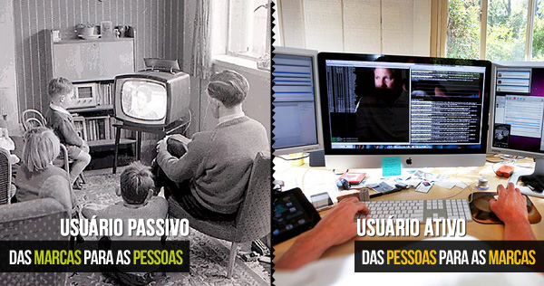 No livro “Marketing na Era Digital”, Martha Gabriel afirma que esse novo perfil de usuário passa a ter uma “presença ativa em meio as marcas”, o que na prática quer dizer que aquele consumidor que antes ficava passivamente recebendo informações sobre uma empresa ou produto, hoje vai em busca da informação que deseja, faz comparações, além de facilmente compartilhar suas opiniões com outros consumidores. É a chamada “inversão do vetor de marketing”.