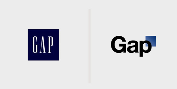 Um outro caso recente, porém não tão feliz é o da conhecida grife Gap que, num ato de ousadia, resolveu modificar a identidade visual de sua marca, abolindo sua já estabelecida tipografia serifada clássica. No lugar dela, adotou uma composição bastante simplória com fonte sem serifa e visualmente pobre que gerou uma grande repercussão nos meios de comunicação, principalmente nas redes sociais e fóruns, criticando e rejeitando a nova marca. A Gap, coitada, quis ser alguém que não era e pagou por esse pecado. Resultado: abortou os planos, achando melhor manter sua identidade visual como era antes. Ou seja: entender a organização, o produto, o serviço é essencial para fazer da identidade da marca um sucesso verdadeiro.